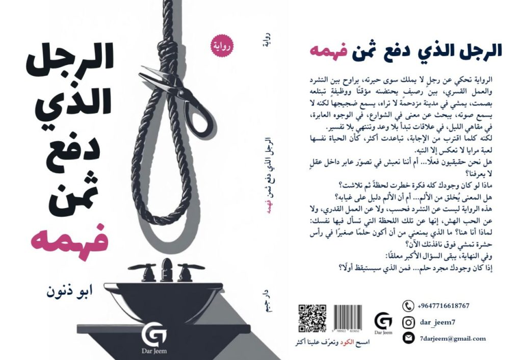 عبثية الوجود وسؤال الحقيقة: قراءة في “الرجل الذي دفع ثمن فهمه” لأبو ذنون تقدّم رواية “الرجل الذي دفع ثمن فهمه” للروائي الشاب أبو ذنون، الصادرة عن دار جيم للنشر والتوزيع، نصًا ينخرط بعمق في إشكالية العبث الوجودي، حيث تتقاطع التجربة الفردية مع أسئلة فلسفية مفتوحة حول حقيقة العالم وحدود الإدراك الإنساني. لا تسعى الرواية إلى […]